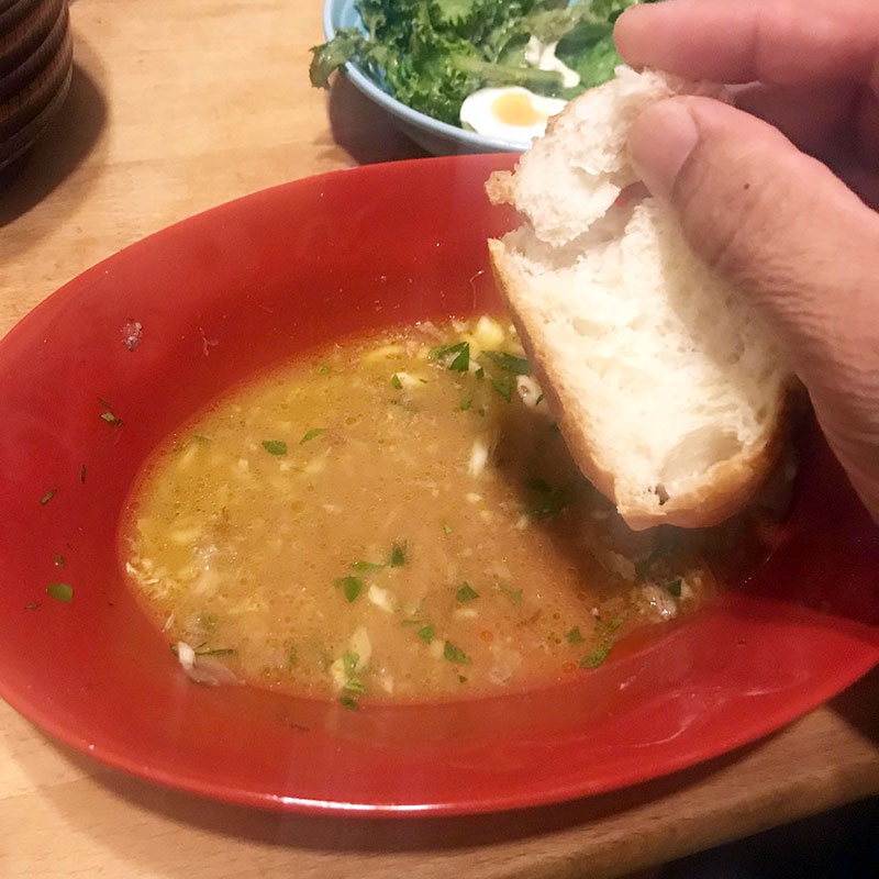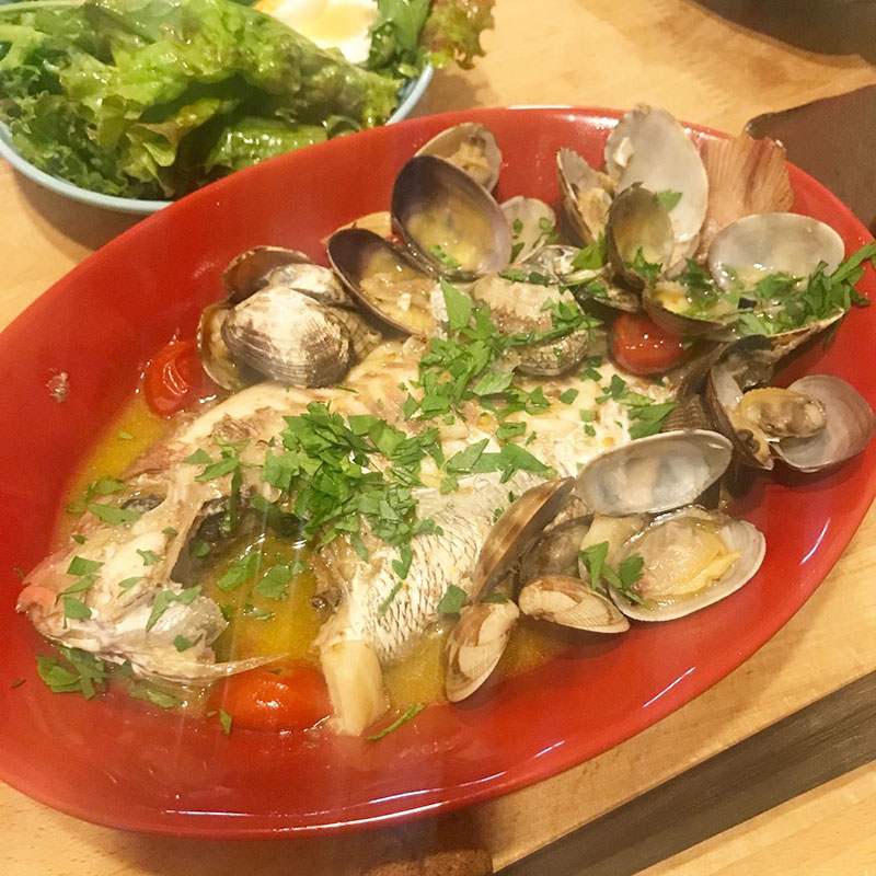アクアパッツァ、食べた後の旨味だけのスープにはバゲット浸していただきました。