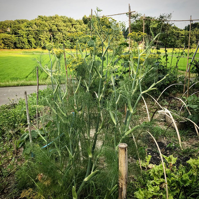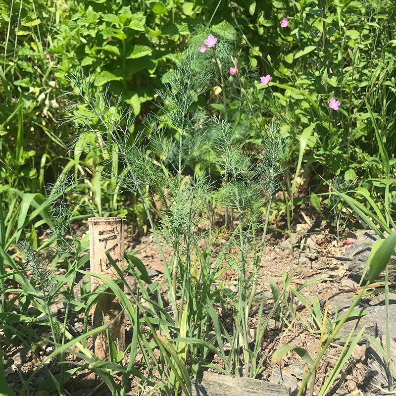 ボルシチに欠かせないディル。去年のこぼれ種から芽が出てあちこちで育ってる。