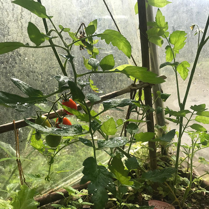 加熱調理すると美味しいというイタリアのミニトマト、シシリアンルージュ、赤くなってきた。