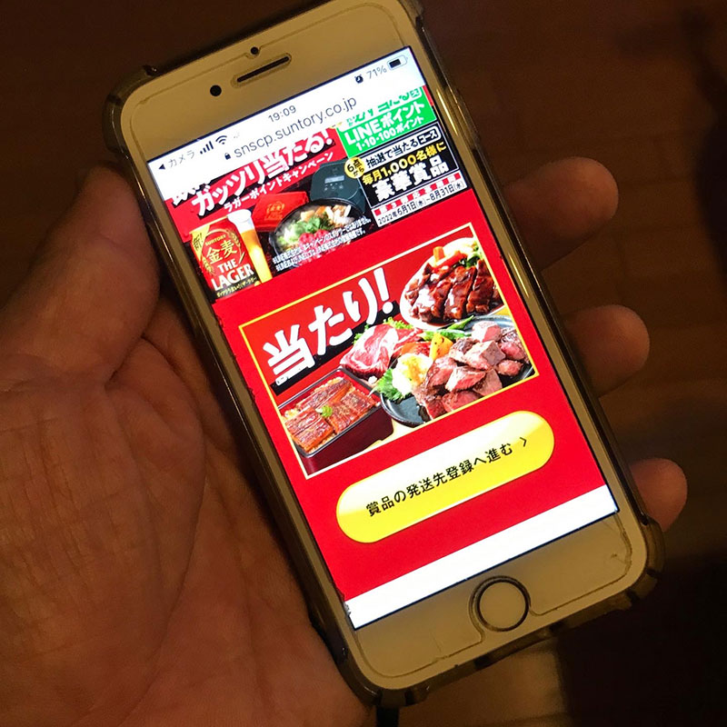 ふと思いついてカミさんにスマホ渡して押してもらったらまさかの「当たり!」美味しい高級すき焼き肉 400gゲット!でかした、カミさん・笑
