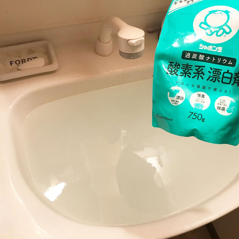 洗面所も漂白剤で掃除した。