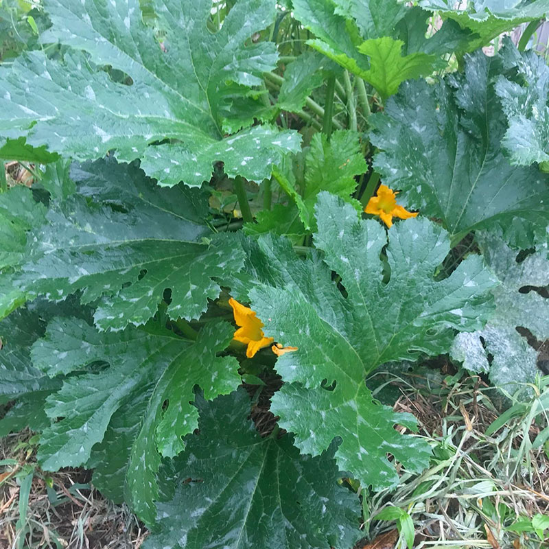 大きな大きな葉のズッキーニ 。毎朝大きい黄色の花を咲かせてる。