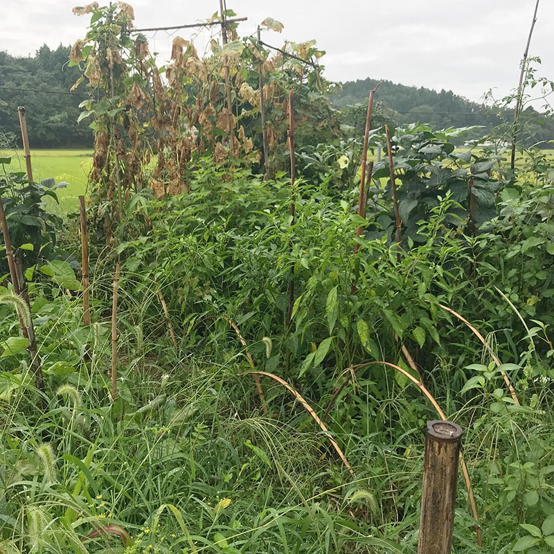 荒地の様な畑。きゅうりは採れなくなった。夏の間、毎日きゅうりのぬか漬け食べさせてくれてありがとう!
