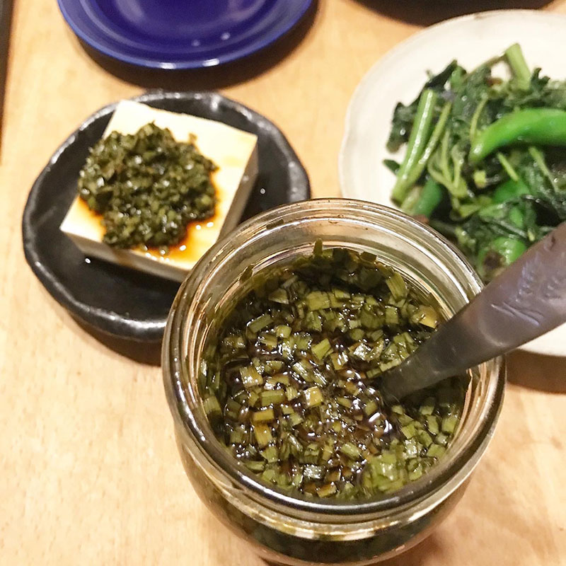 ニラたっぷりのニラ醤油で冷奴。
