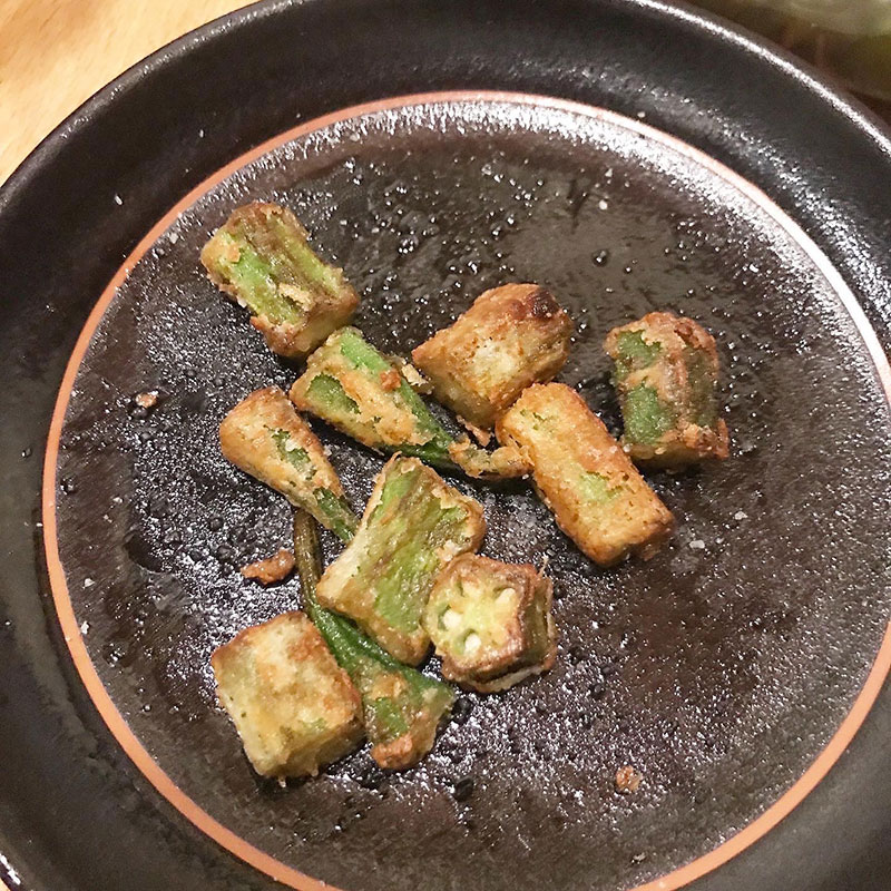 カミさんが粉つけて揚げてくれたオクラが美味しすぎ。