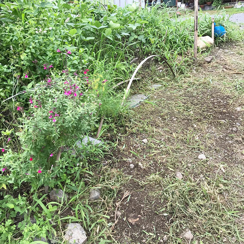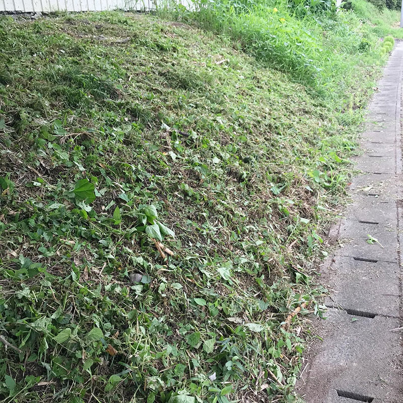ばっぱ(お婆さん)か草むしりしたみたいに仕上げるよ。地域の年寄りがいる家は手でていねいに草むしってるから家の周りがきれい。