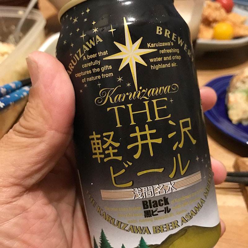乾杯は妹にもらった「THE 軽井沢 ビール」6種類飲み比べの黒ビール。旨し。