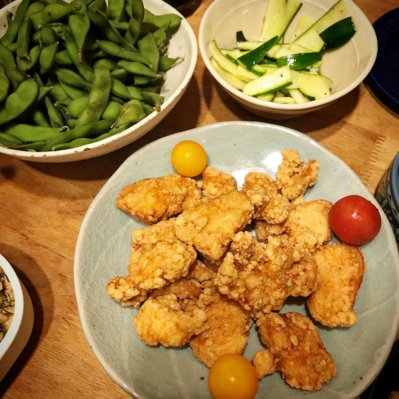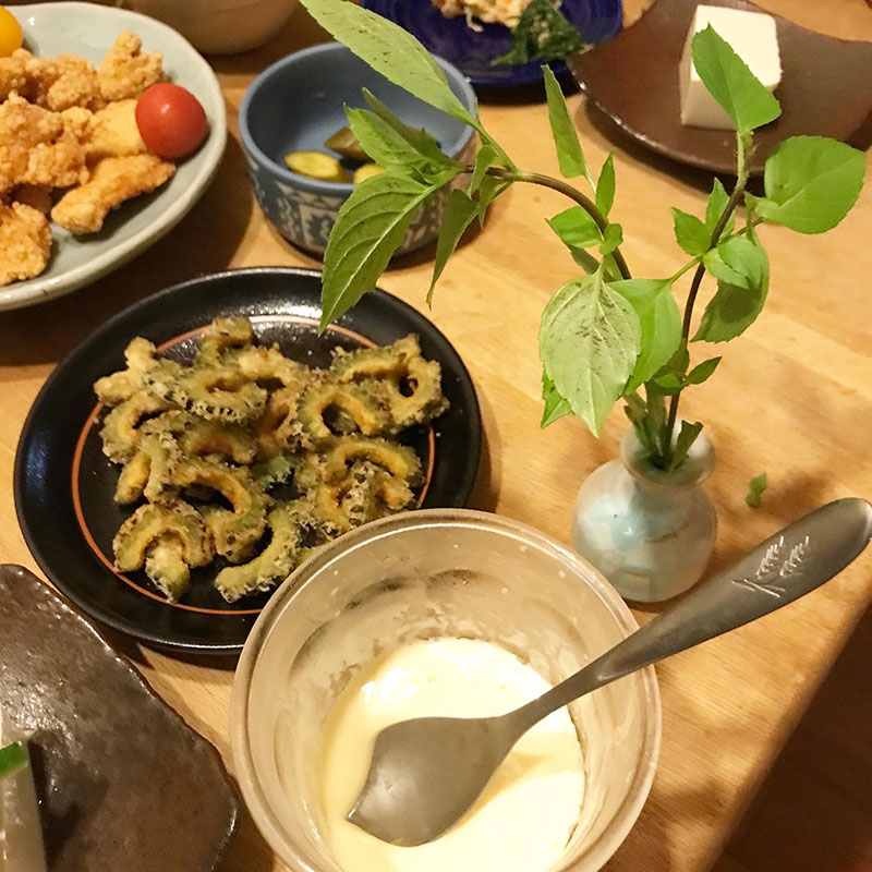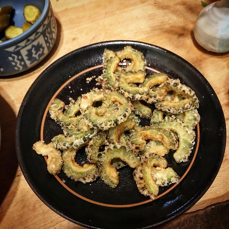 いただいたゴーヤも唐揚げにしてくれたんだけど、これが美味い。苦くて甘くて。このゴーヤの食べ方、気に入った!