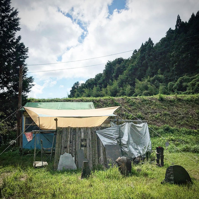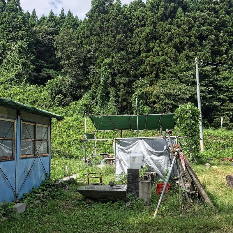 午後は石彫りの続き。大量の粉塵が舞うのでタープも撤収する。