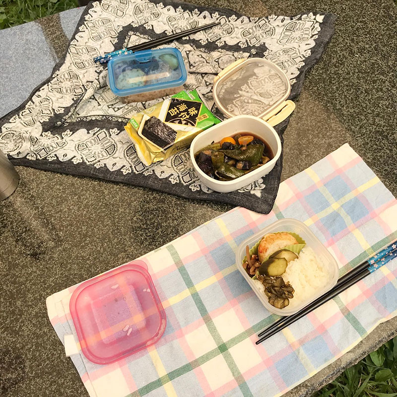 仕事場の石テーブルでランチ