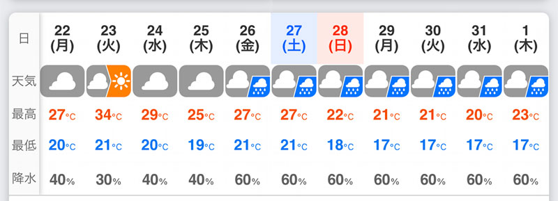 天気予報を見ると今月晴れなのは今日が最後。後は曇りか週末からはずっと雨みたい。