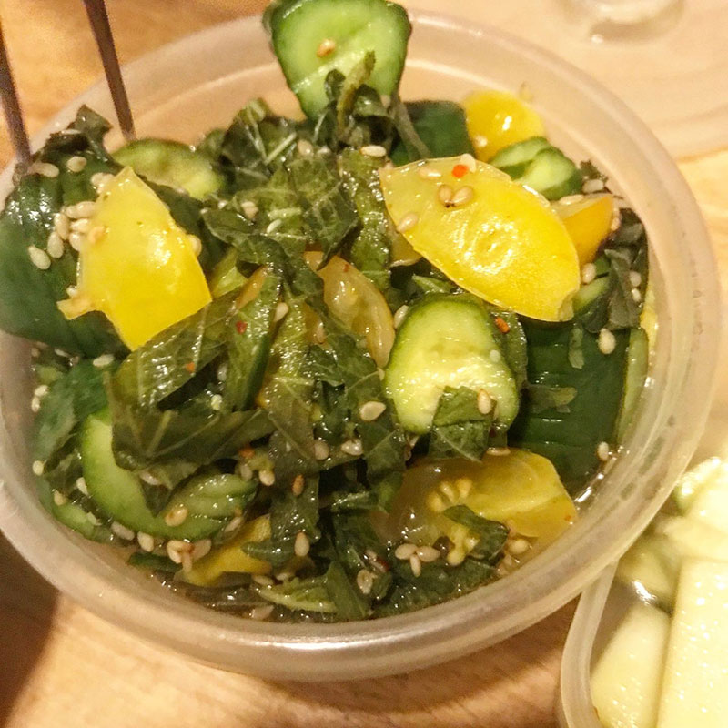 蛇腹に切ったきゅうりの酢漬けには畑のミニトマトも入れて旨味が増してる。