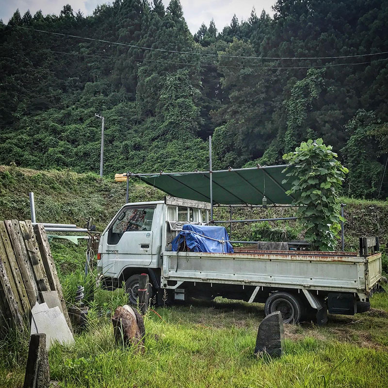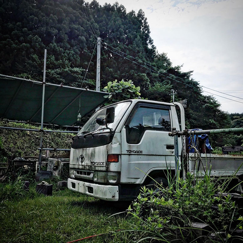 先日、石を移動した際ユニック車のタイヤに空気が入ってないことに気がついたので