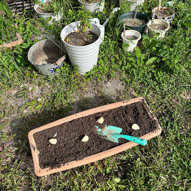 にんにくは植え付けから収穫までの期間が9ヶ月と長い。狭い畑には植えられない。