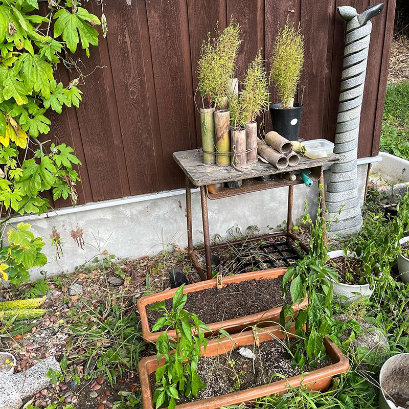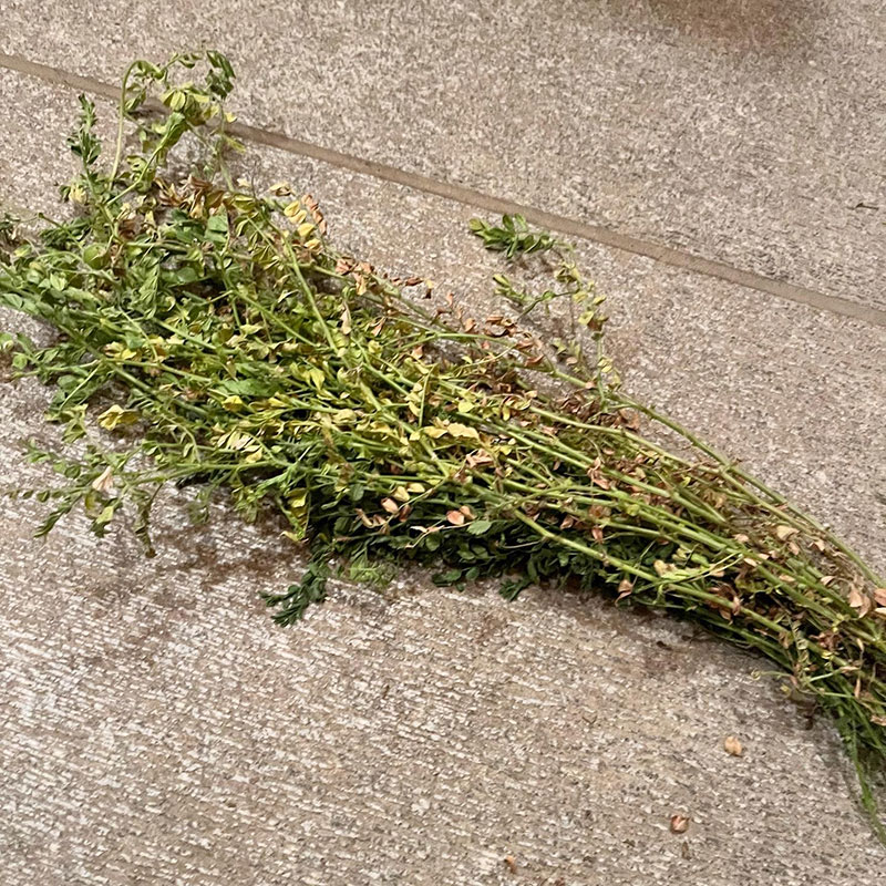 育てていたひよこ豆。地植えのは枯れ、プランターのはあまり大きくならなかった。