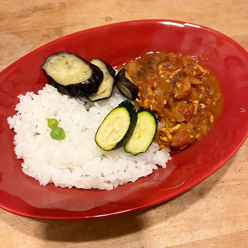 ちなみに我が家のスパイスカレーはいつも僕が作っている。初めてカミさんが作ったスパイスカレーはトマトソースの様で新米にかけると美味しい(褒めてますw)揚げ茄子とズッキーニ も乗せてごちそうさまでした。