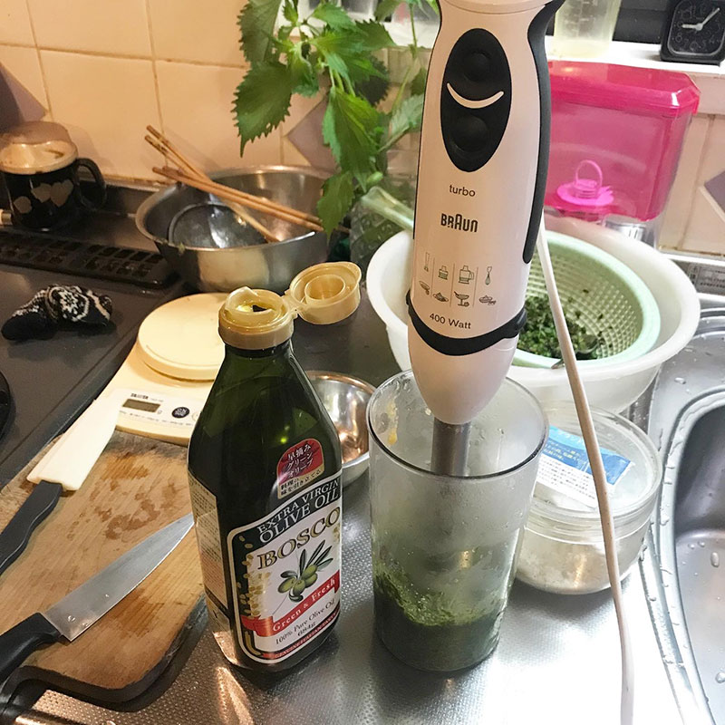 4本倒して集めて茹でて絞ったボール状にしたものの重さは70g弱だった。