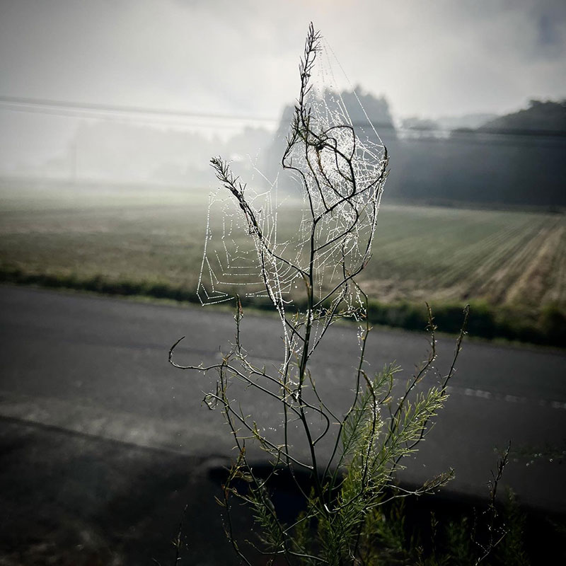 畑のアスパラガスの蜘蛛の巣も