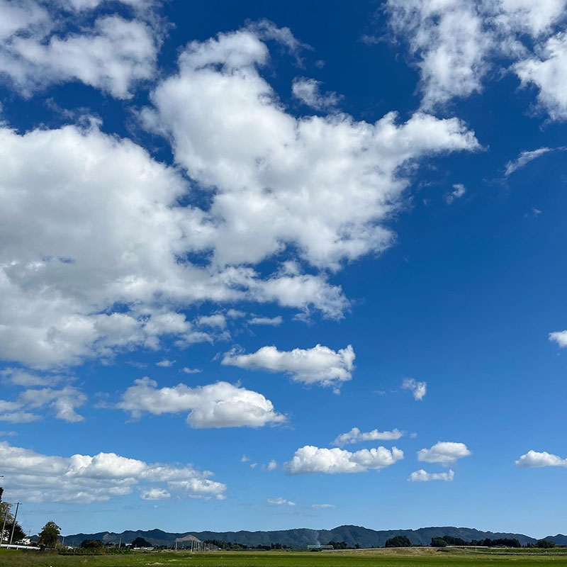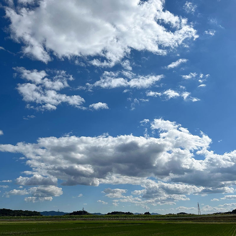 今は青空。田んぼから靄が立ち昇っている。
