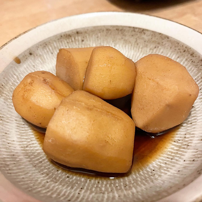 パスタはひとり60gしか茹でて無いので里芋をあわてて煮た。