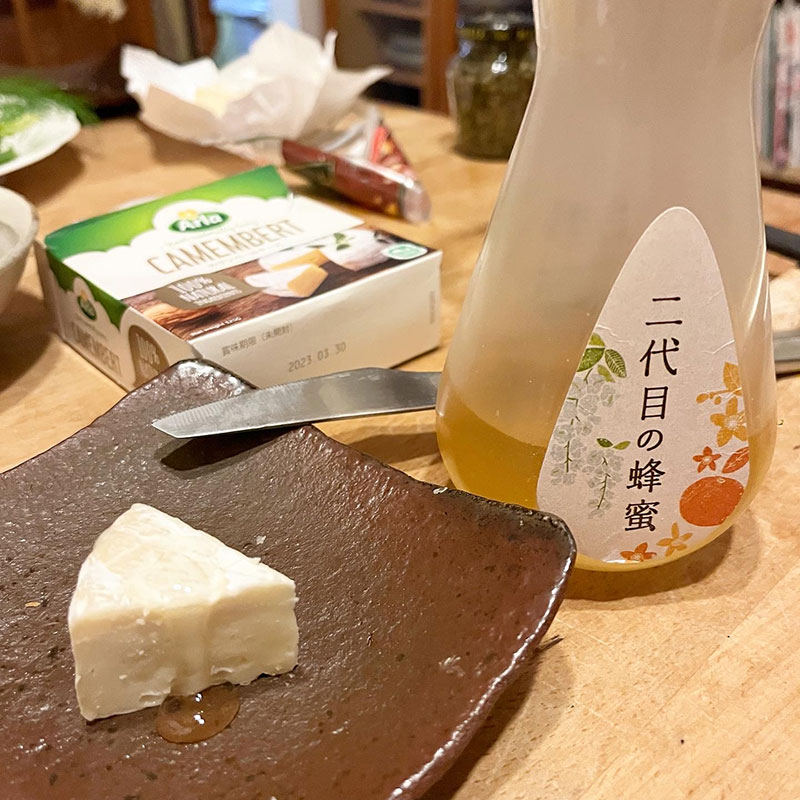 〆にカマンベールチーズに二代目の蜂蜜かけたら最高。そしていつもの赤い金麦。