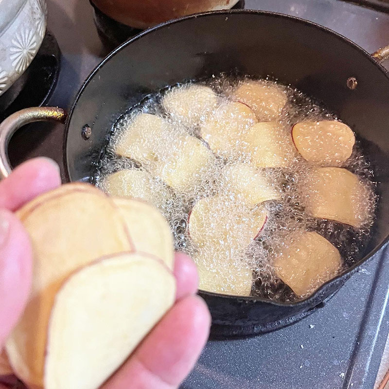 近所の方にいただいたさつま芋を揚げて