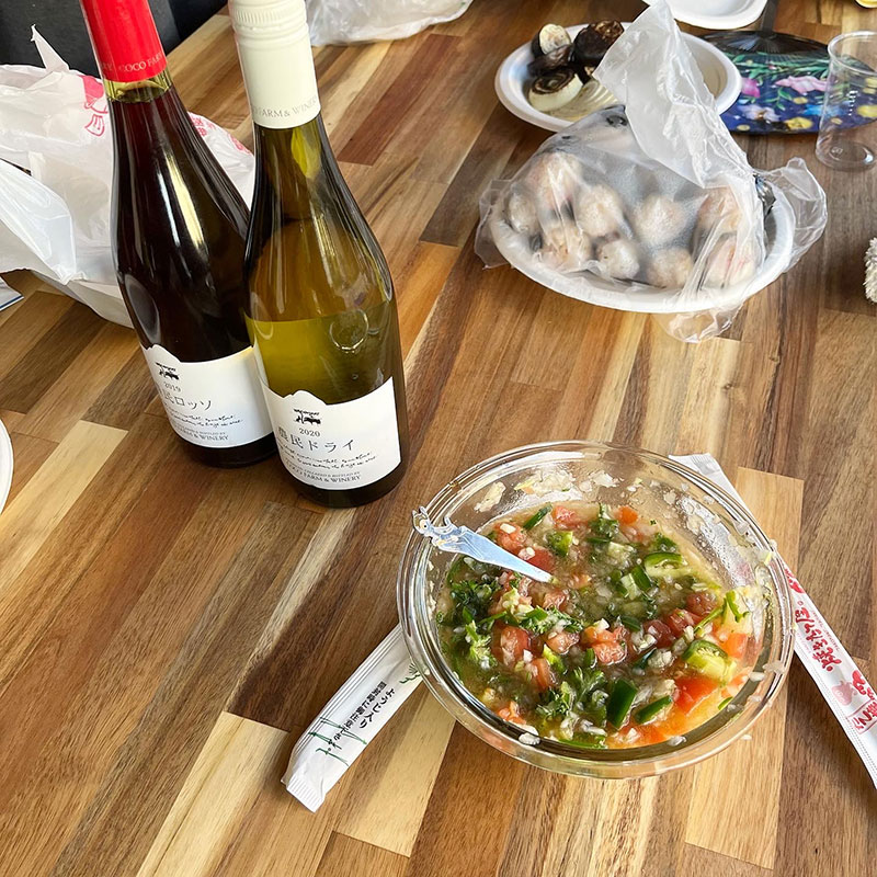 海鮮バーベキュー 海鮮盛り沢山のバーベキューにお呼ばれ。 松島の焼き牡蠣何個食べたか。 生で食べられる海老も。 ほりにしも 青森の宝、焼き肉のタレ、スタミナ源たれは文句無しに美味しいけど ハラペーニョで作ったサルサソースで食べる牡蠣や肉が旨い! 美味しいビール、 赤と白のワイン、 幸せな宵だ、 幸せな酔いだ。 今日のバーベキューの〆にいただいたウィスキー。 海鮮バーベキューから帰ってなめこの味噌汁。 デザートはカフェ橙のかぼちゃのチーズケーキ。美味しい日だった。 2022年10月31日 | コメントはまだありません | カテゴリー: おいしい