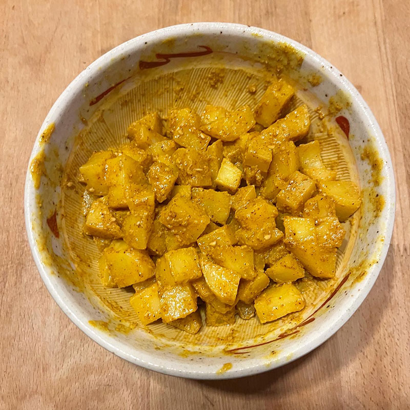 印度カリー子さんのレシピの中で一番多く作ってる「じゃがいものすりごまナムル」作った。