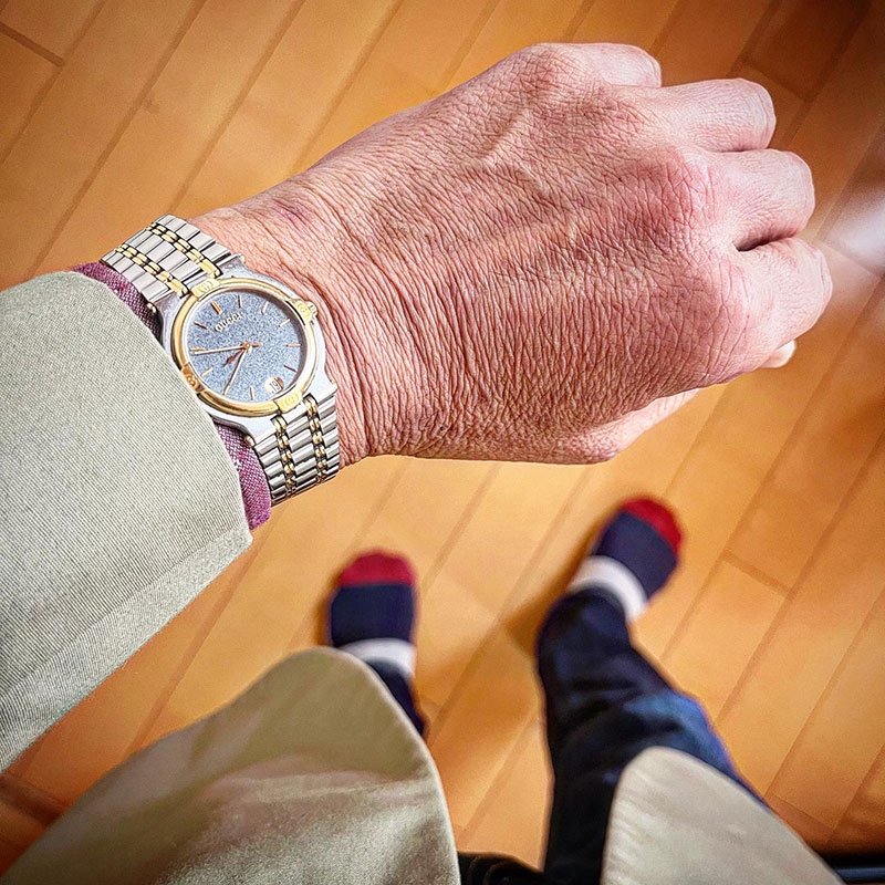 お洒落には興味が無いけど今日は個展初日なので軽装じゃなくカミさんのお父さんの形見の時計とカルバン・クラインのジャケット羽織って行こう。