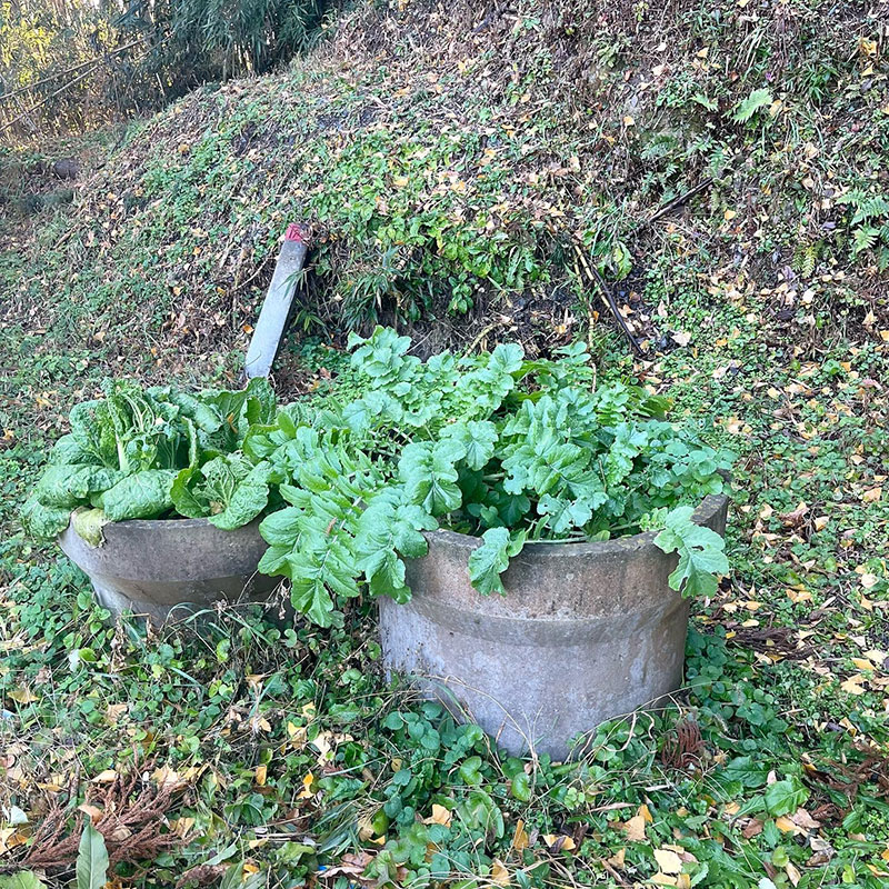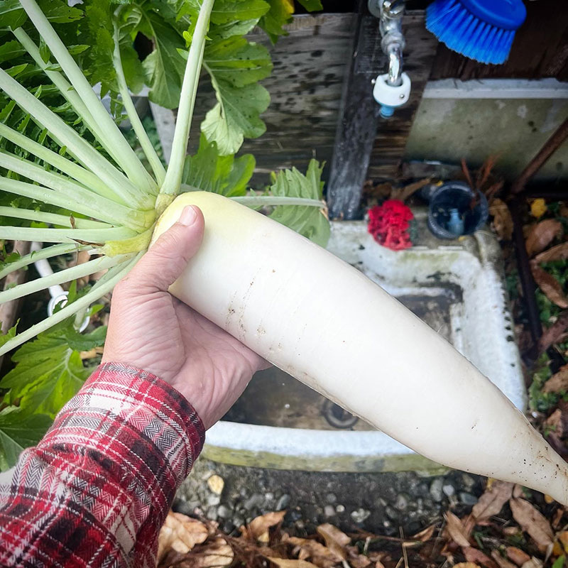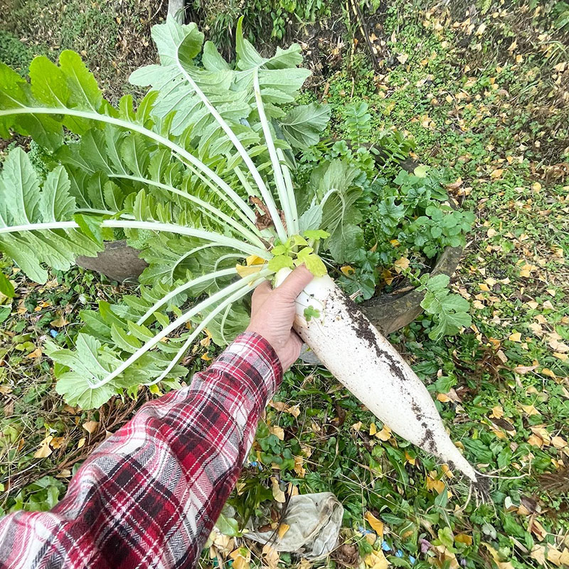 庭の土管に種まきして育った土管大根