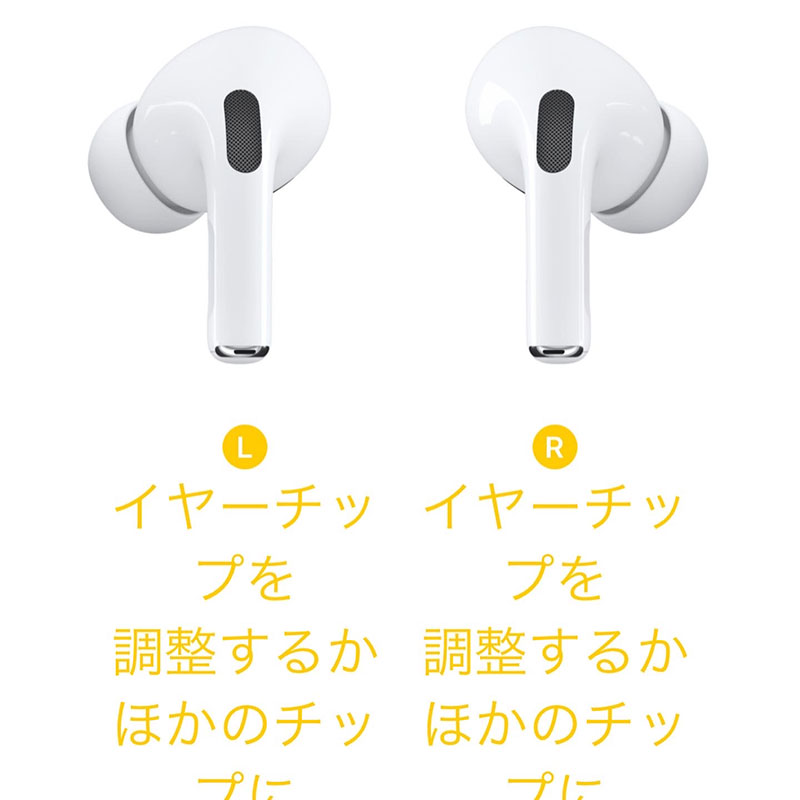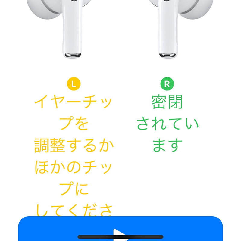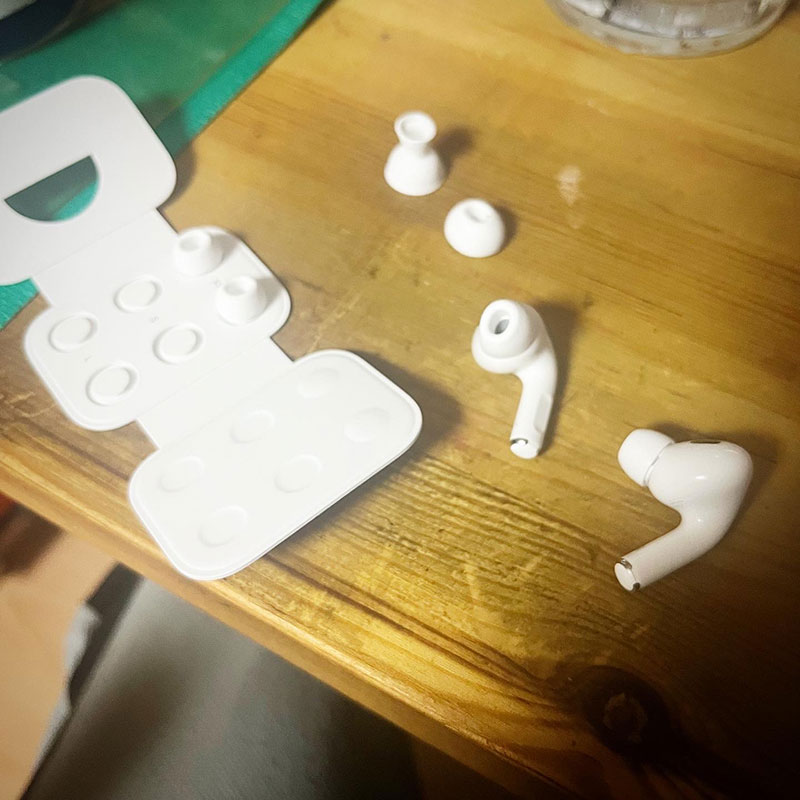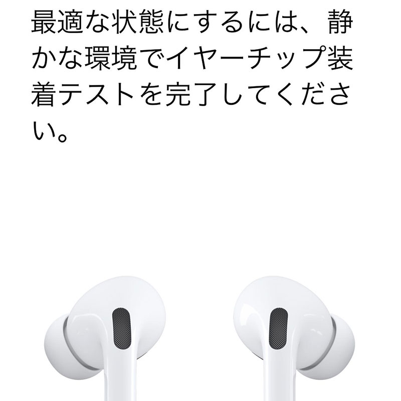 買ったばかりの AirPods Pro の装着状態Check。