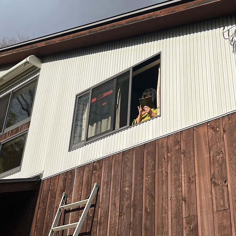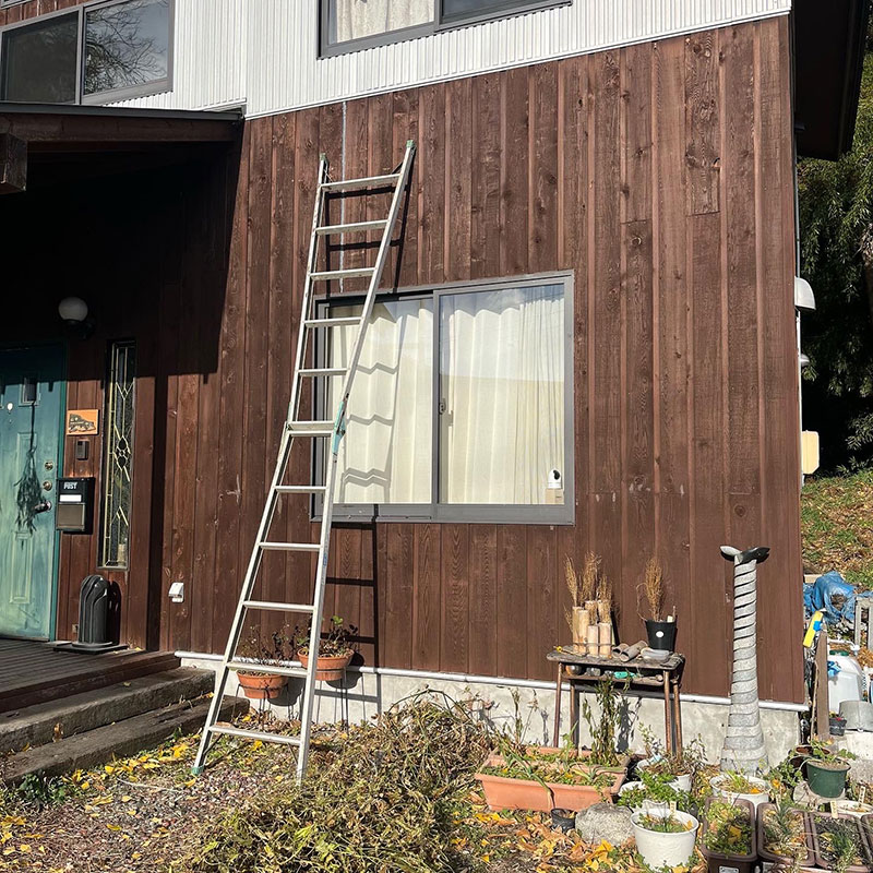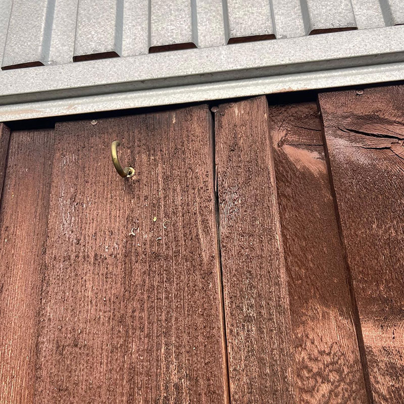 ゴーヤの緑のカーテンを外す作業をしていたら外壁の木部に割れや隙間を発見。