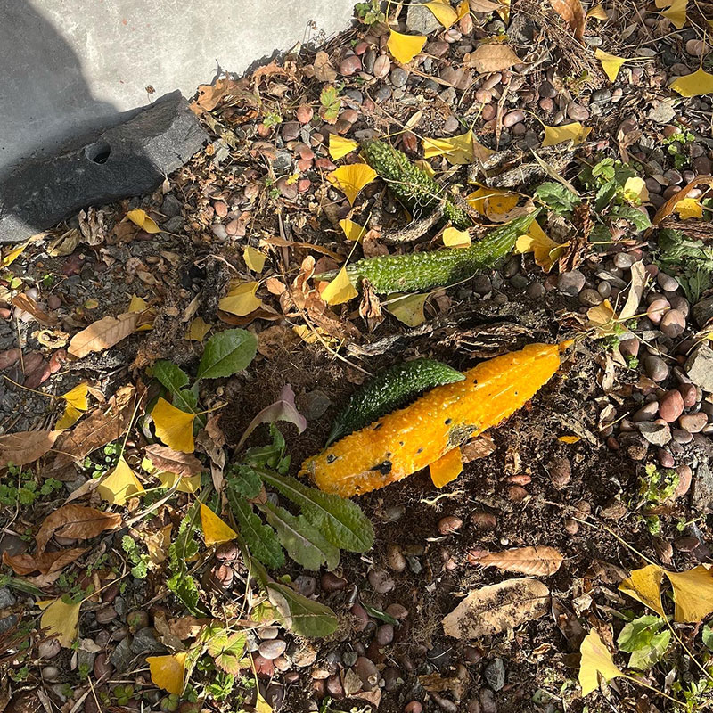 夏から今まで緑のハートで楽しませてくれたゴーヤの緑のカーテン。