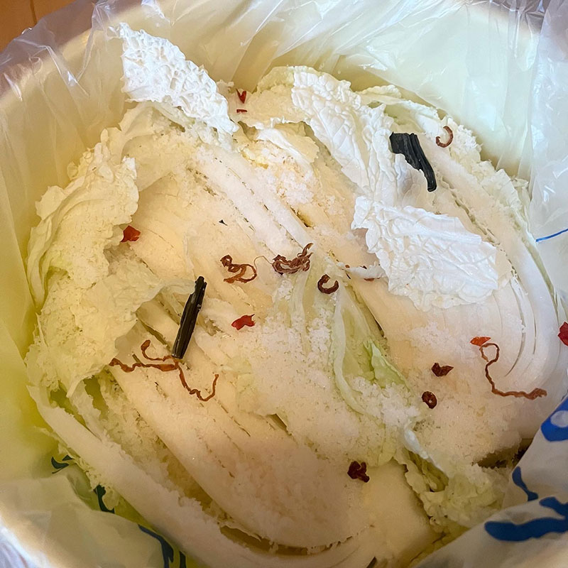 白菜を漬ける。