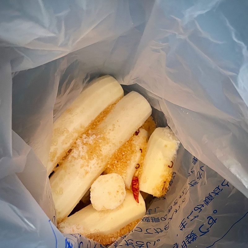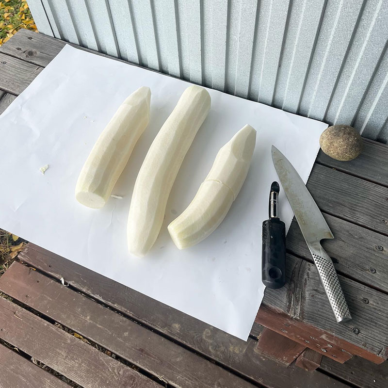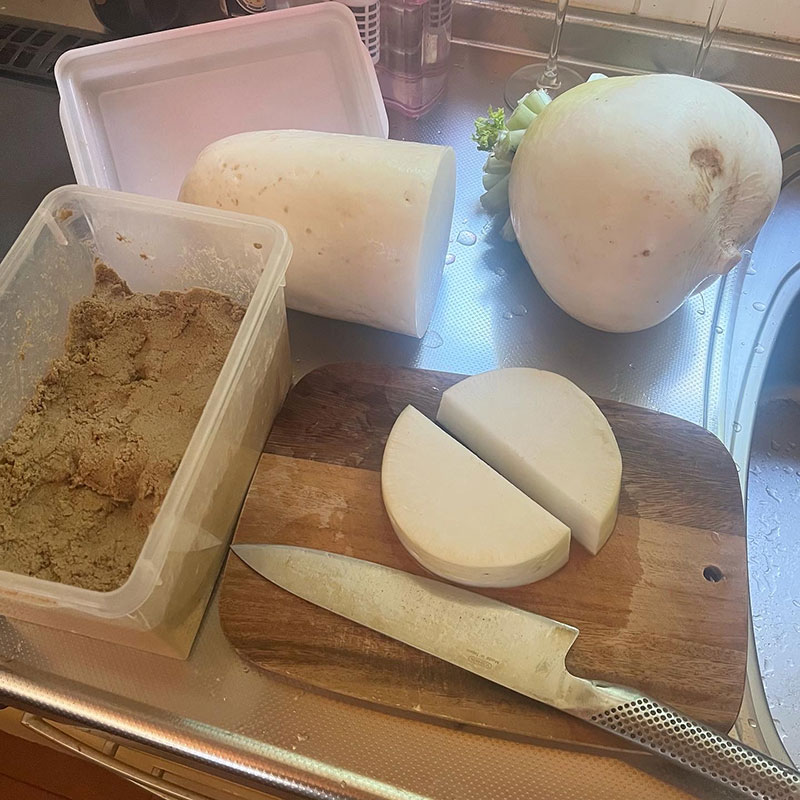 近所の方にいただいた大根3本を生漬けに仕込む。