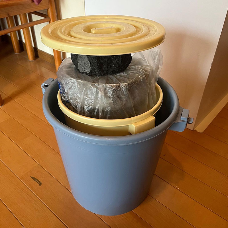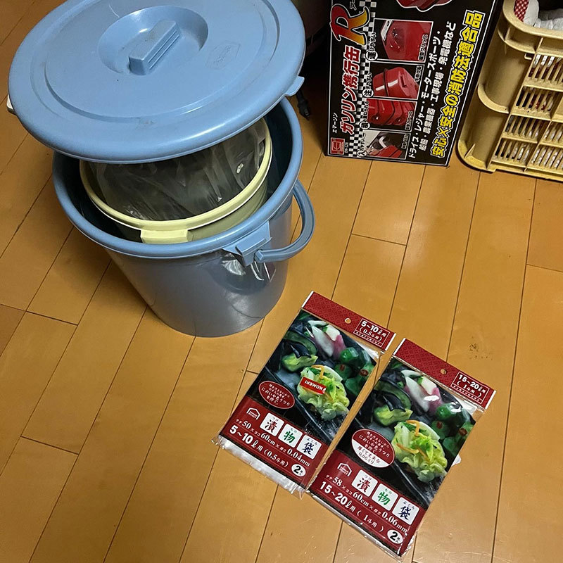 今年から匂い対策と洗うのが楽になるように漬け物をビニール袋の中で漬けてる。未使用のゴミ袋でやってるけど漬け物用の袋があると教えてもらったので買ってきた。