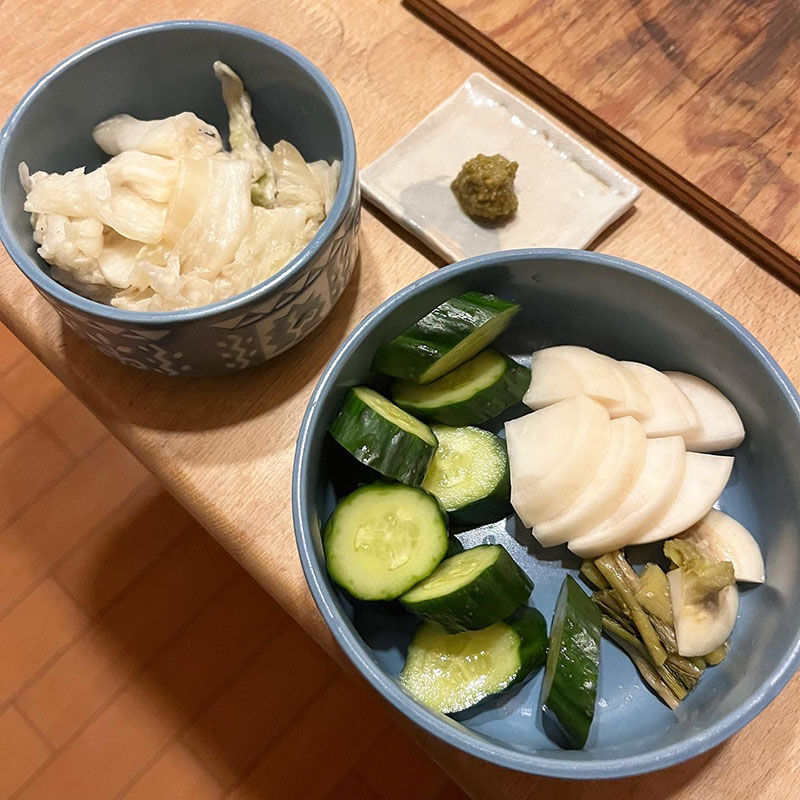 そして自家製の白菜漬け、かぶときゅうりのぬか漬け。漬け物のない冬の食卓なんて。