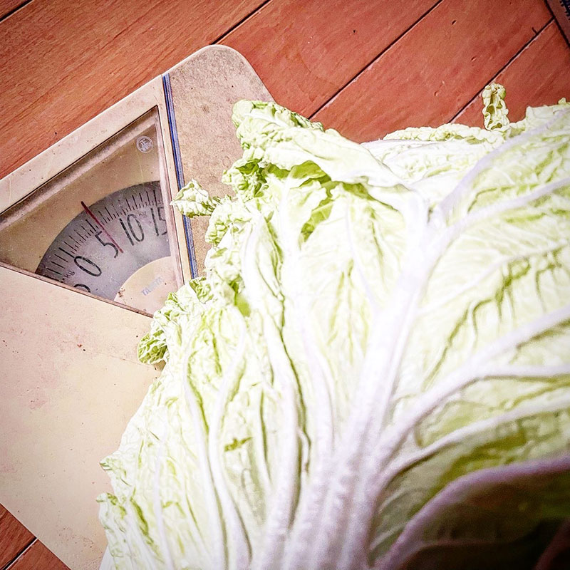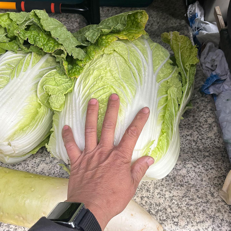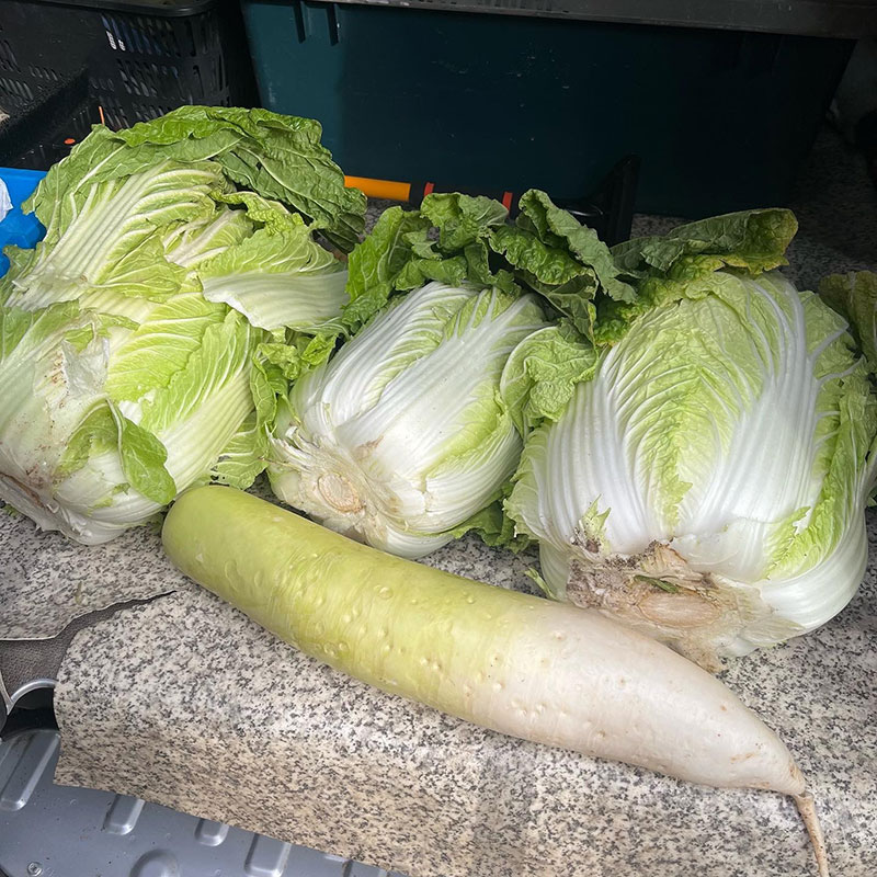 白菜は測ってみたら6kgもあった。すごく甘いんだって。早速、白菜漬け仕込まないと。