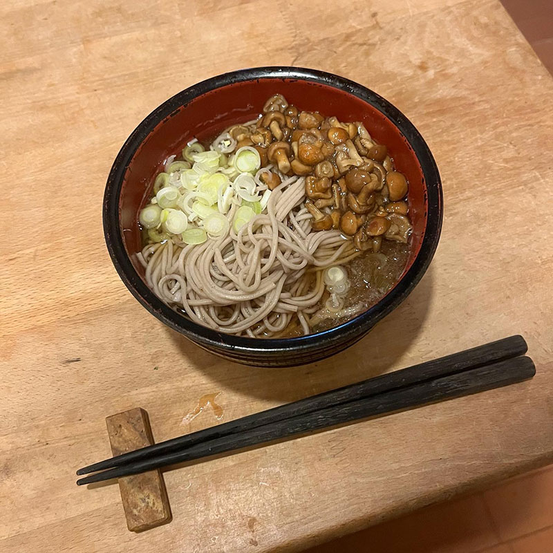 それに小鍋にたっぷりすってももらった時とそれほど変わらない。デカすぎ大根!この水分だけで蕎麦を作る。ちょっと濃度が濃すぎるので少し絞って大根だけ取り分けた。残ったおろし汁を昆布ときのこで炊いて作り置きのかえしを合わせて