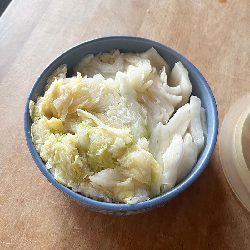 いただいた白菜がびっくりするくらい大きかったのでいつもは1/8をふたつ入れられる容器に入り切らなかった。芯が厚いので食べ応えがある。昆布たくさん入れたから旨味がすごい。