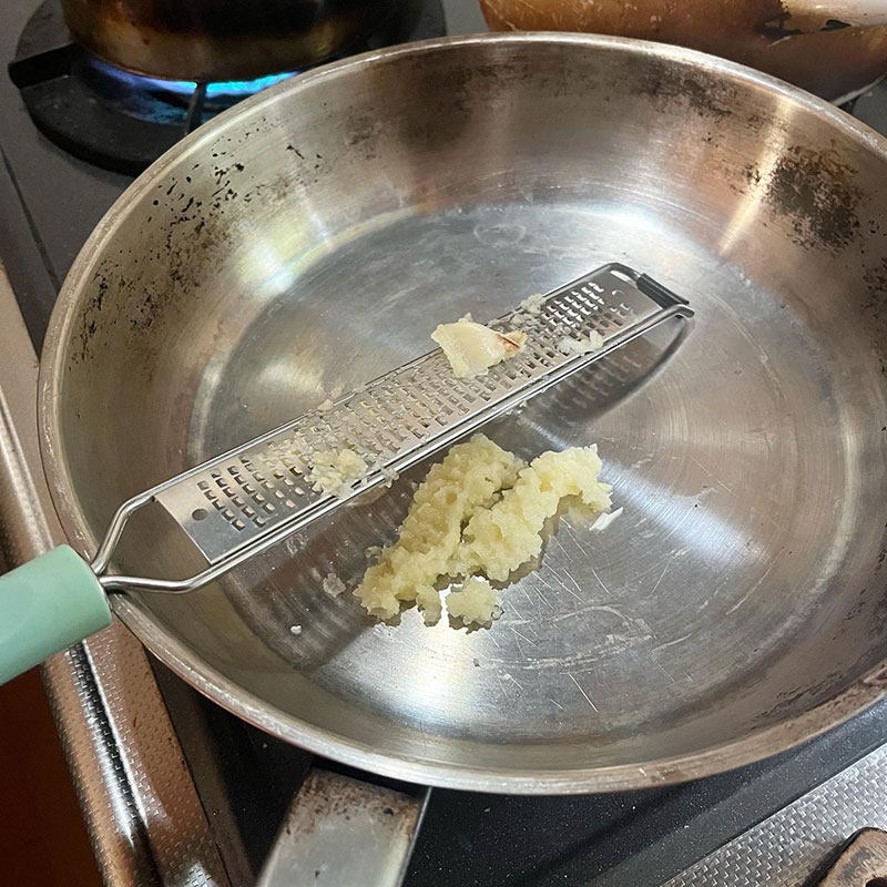 いただいた青森の立派なにんにくすって。ひとつひとつクッキングペーパーで包んでビニール袋に入れて冷蔵庫のチルド室に入れてる。長く持つ。