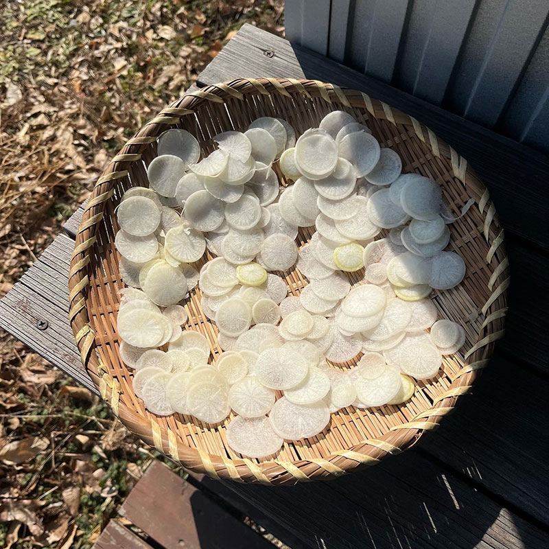 土管で育てた大根。収穫した大根は土をふるい入れたのですべすべに育った。