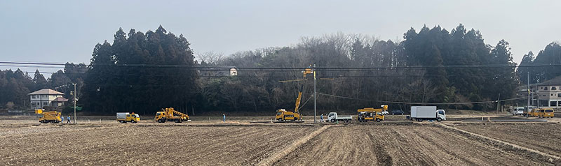 家の前の田んぼのあぜ道の木の電柱を、全部コンクリートのに変える工事してる。大掛かりだな。