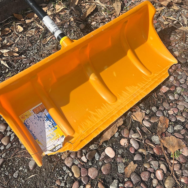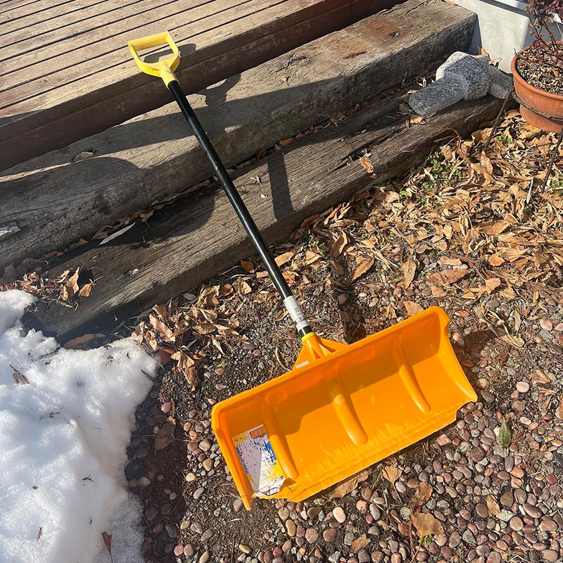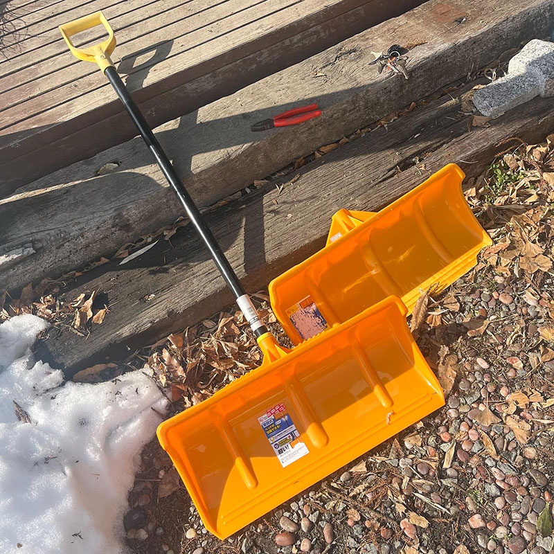 何年も使って角が割れてきた雪かき。