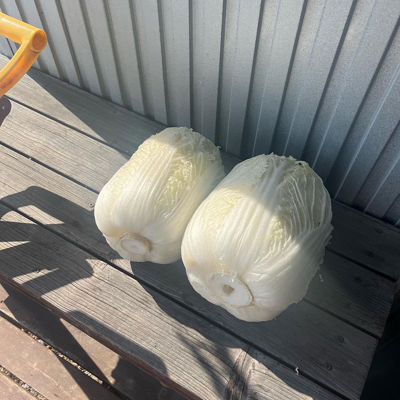 水を捨てに外に出たら近所の方が玄関のデッキに白菜置いていってくれてた。この数年白菜買った事無い。ありがたい事です。