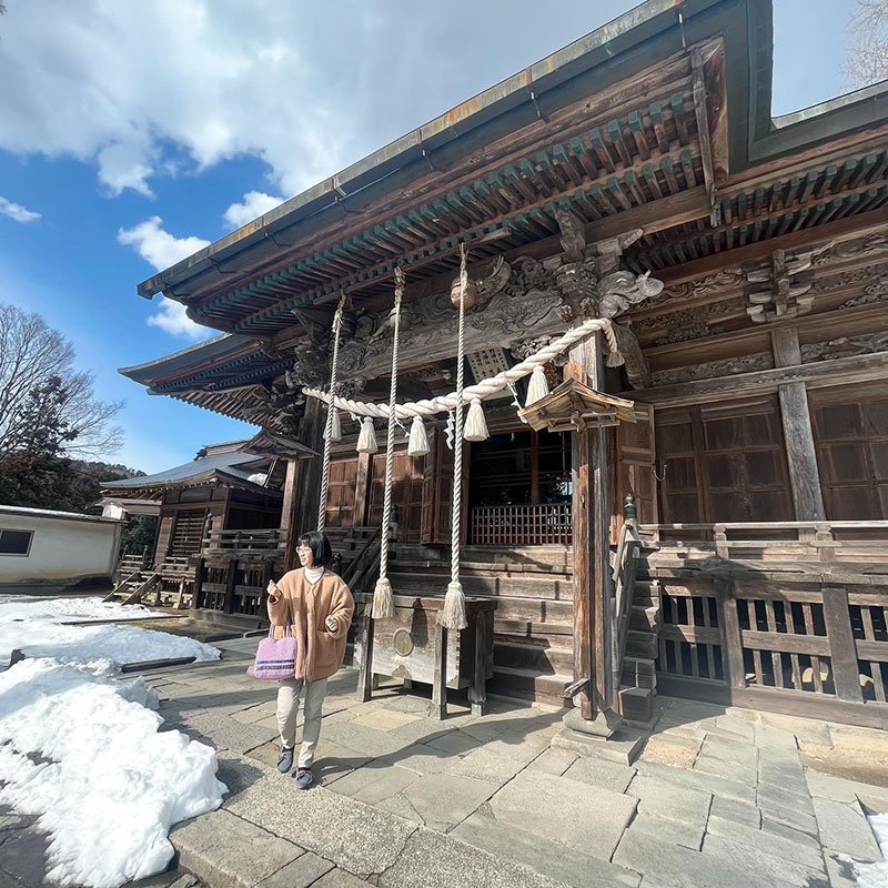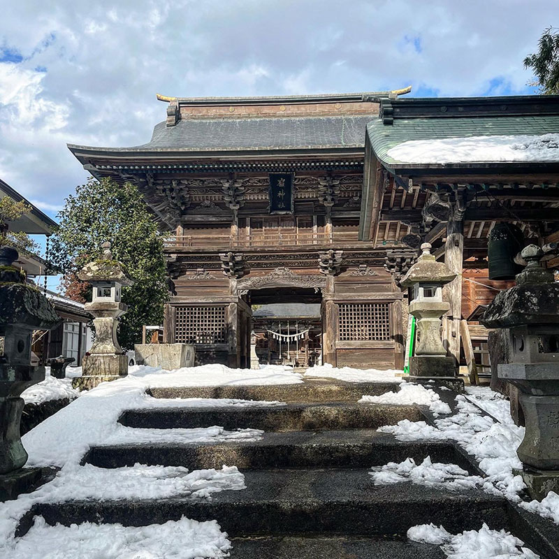 秋に銀杏の葉の黄色い絨毯と青空のコントラストで楽しませてくれた刈田嶺神社に。