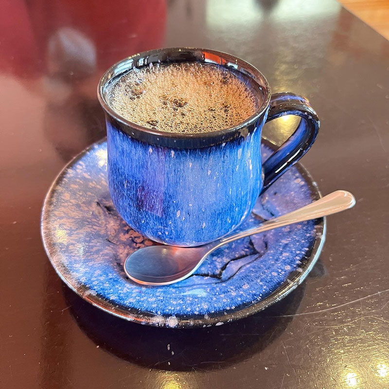 甘いケーキに合わせて一番苦いコーヒーを選んでもらった。インドモンスーンの極深煎り。正解。とても美味しい組み合わせだった。