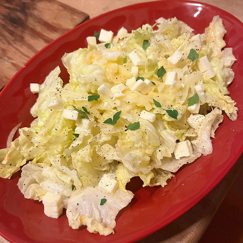 レタスと玉ねぎをにんたまドレッシングで。