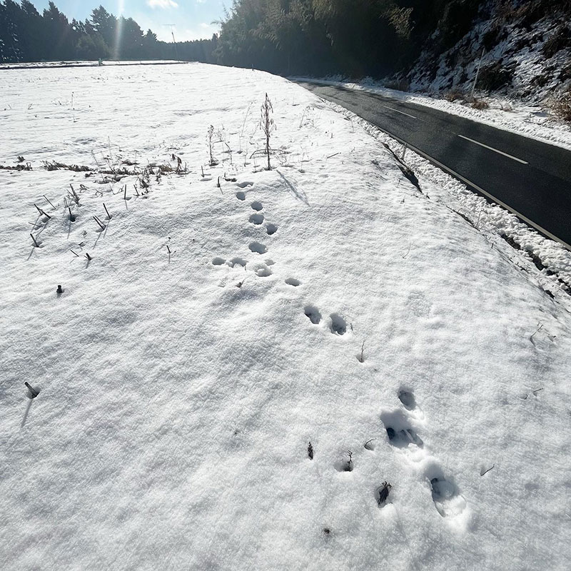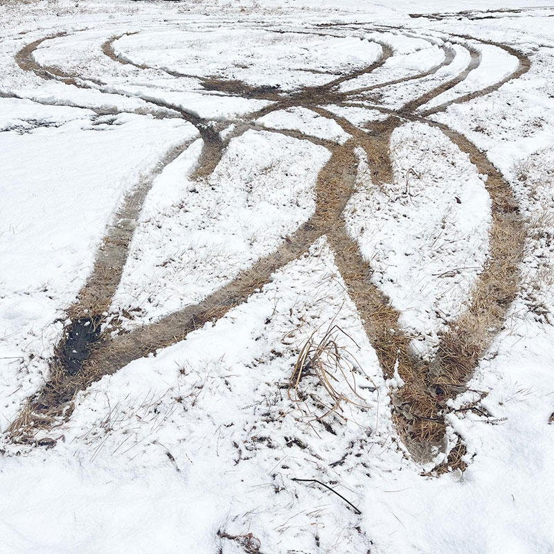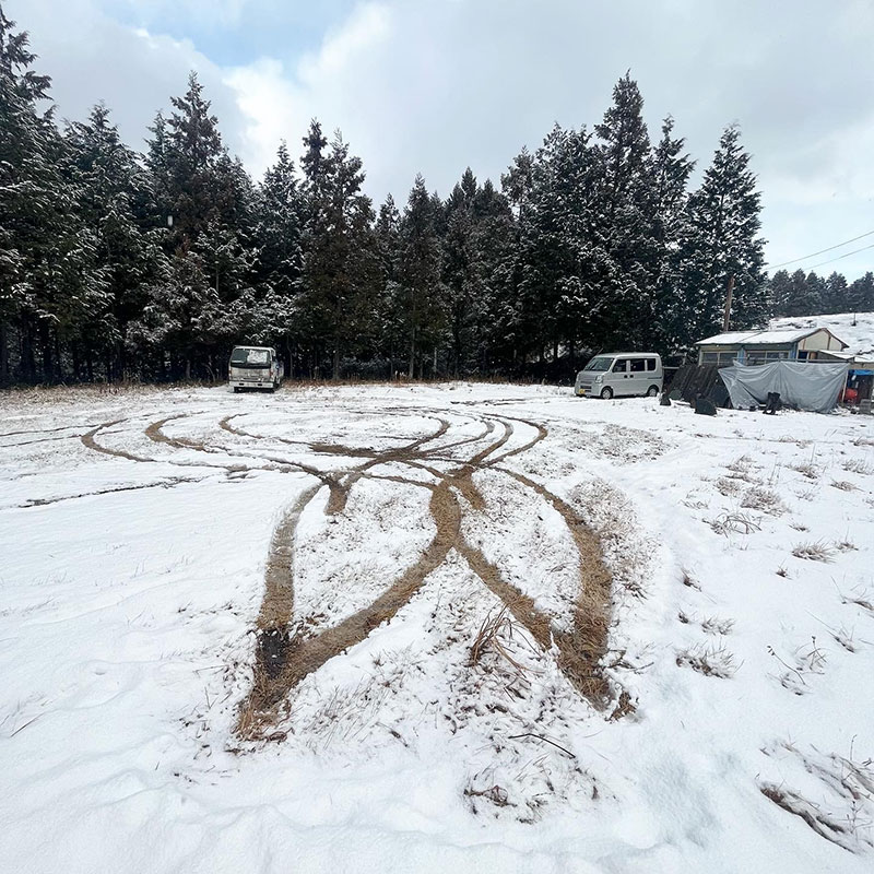 雪が降らなくて今シーズンは練習出来なくてあまり上手くいかなかったけど車の轍でふたつのハート描いた・笑