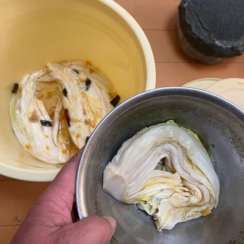 一昨日仕込んだ白菜漬けを食べ始めたので、その前に仕込んだ白菜漬けを痛む前に食べてしまおうと味噌汁の具にしたら煮ても煮ても柔らかくならずシャキッとした歯応えが残る。どゆこと?